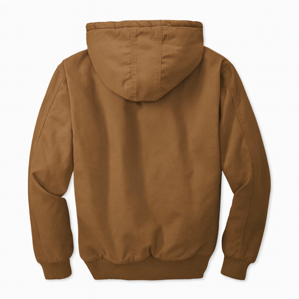 このヘビーウェイトのダッククロス・フード付きジャケットは、日常の作業やアウトドアに最適な、タフさと着慣れた快適さを兼ね備えています。密度の高い12オンスのコットンは、酵素洗いによって柔らかさを得ながらも、過酷な使用にも耐える構造を保ちます。裏地付きのドローストリングフードはアンティーク調の真鍮アイレットと同色のコードで風を防ぎ、リブ仕様の袖口と裾が暖かさを逃さず、型崩れも防ぎます。