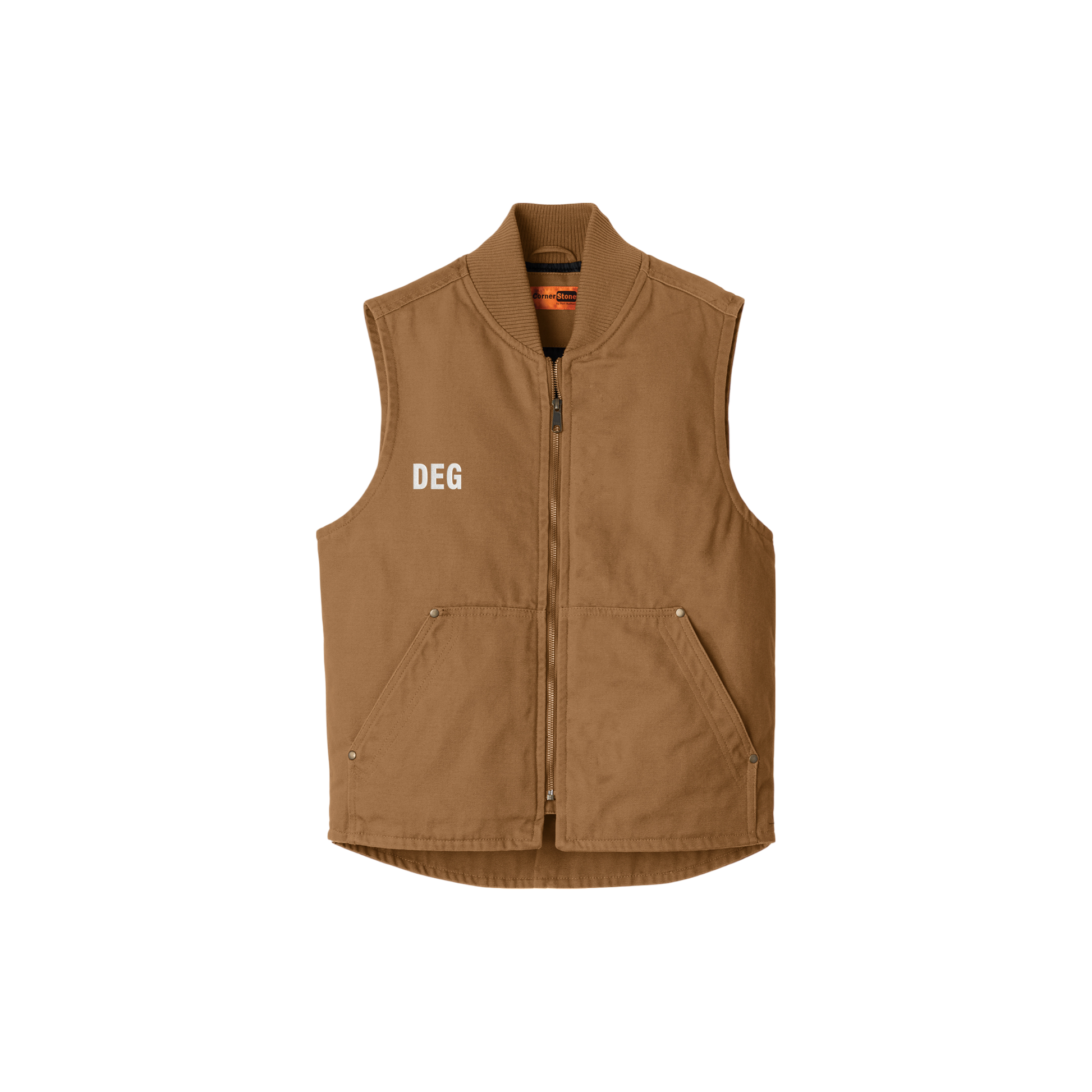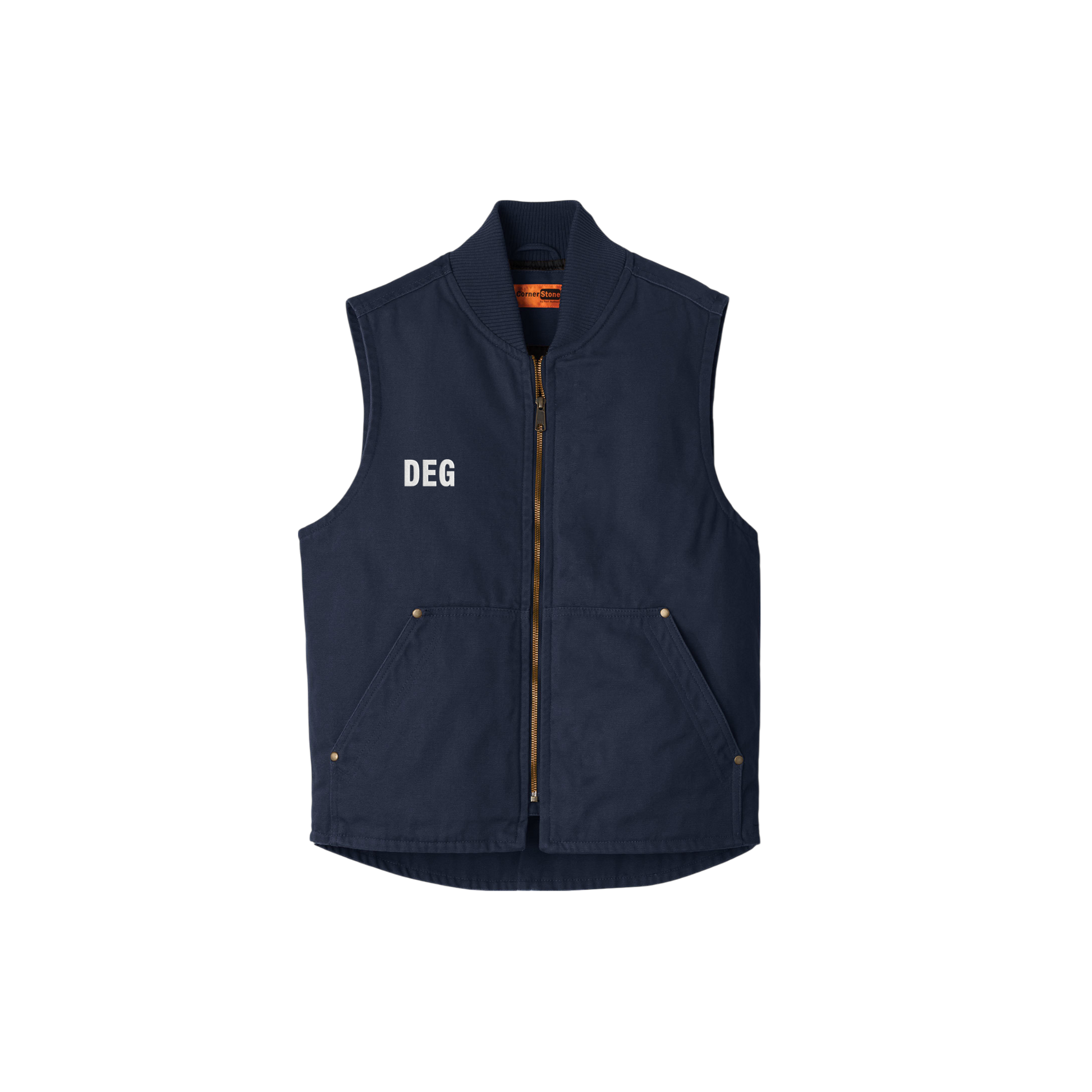 ユニセックス ウォッシュドダッククロス製ワークベスト 胸元DEGイニシャル刺繍